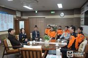 미담타임스 김준완 기자 | 경산소방서는 13일 오전 조현일 경산시장이 소방서를 방문해 명절 기간에도 현장을 지키는 소방공무원들을 격려했다고 밝혔다. 이번 방문은 설 명절을 앞두고 시민의 생명과 재산 보호를 위해 불철주야 근무 중인 직원들의 노고를 위로하고 감사의 뜻을 전하기 위해 마련됐다. 또한 경산소방서 각 부서 관계자들이 함께 자리해 현장의 의견을 나누고, 앞으로의 안전대책에 대한 다양한 논의도 이루어졌다. 특히 조현일 시장은 최근 발생한 송유관 폭발 화재 현장을 언급하며, 위험한 상황 속에서도 침착하고 신속하게 대응하는 소방관들의 모습에 깊은 감명을 받았다고 전했다. 조 시장은 “시민의 안전을 지키는 일에 있어 소방공무원들의 헌신과 희생은 무엇과도 바꿀 수 없는 소중한 자산”이라며 “앞으로도 안전한 경산을 만들기 위한 협력과 지원을 아끼지 않겠다”고 강조했다. 한창완 경산소방서장은 “시장님의 방문과 격려는 소방관들에게 큰 힘이 된다”며 “우리 소방서는 지역사회 안전을 위해 앞으로도 변함없이 최선을 다할 것”이라고 답했다. 경산소방서는 앞으로도 재난 대응 역량을 강화하고, 시민이 안