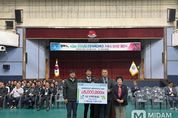 미담타임스 김교환 기자 | NH농협 거제시지부(지부장 권경화)는 지난 10월 27일 오후 2시 거제시체육관에서 열린 제36회 경상남도생활체육대축전 거제시 선수단 결단식에서 거제시 선수단을 응원하기 위해 후원금 500만 원을 전달했다. 권경화 지부장은 “생활체육인들의 열정과 노력이 좋은 결실로 이어지길 바라는 마음으로 이번 후원을 준비했다”며, “거제시 선수들이 그동안 갈고닦은 실력을 마음껏 발휘해 좋은 성과를 거두길 기대한다”고 밝혔다. 김환중 거제시체육회장은 “NH농협 거제시지부의 변함없는 관심과 후원에 깊이 감사드린다”며, “그동안 흘린 땀의 결실이 빛날 수 있도록 끝까지 최선을 다해 준비하겠다”고 전했다.