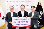 미담타임스 김준완 기자 | (주)에이프로세미콘(대표이사 임종현)은 지난 29일 구미시청을 방문해 (재)구미시장학재단에 지역 인재 육성을 위한 장학기금 2천만 원을 기탁했다. 에이프로세미콘은 질화갈륨(GaN) 전력반도체 핵심 소재와 소자·부품을 생산하는 기업으로, 2023년 12월 경상북도·구미시와 투자양해각서를 체결했다. 이후 구미국가5산업단지에 600여억 원을 투자해 공장을 신설하고, 광주에 있던 본사를 구미로 이전하며 지역 핵심 산업 생태계의 한 축으로 자리 잡고 있다. 이번 장학기금 기탁은 대규모 투자에 이어 지역 인재 양성에까지 참여한 사례로, 기업 투자와 지역사회 공헌이 선순환하는 모델이라는 평가를 받고 있다. 이날 임종현 대표이사는 “이제 구미의 기업으로서 지역사회에 기여할 수 있는 뜻깊은 자리에 함께하게 돼 기쁘다”며 “구미의 인재들이 꿈과 역량을 키워갈 수 있도록 지역 기업으로서 사회적 책임을 꾸준히 실천하겠다”고 밝혔다. 김장호 구미시장학재단 이사장은 “지역 인재를 위한 따뜻한 나눔을 실천해 준 데이프로세미콘에 감사드린다”며 “지역에서 배우고 성장한 인재가 지역 기업에