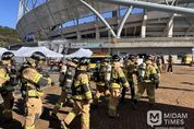 미담타임스 김교환 기자 | 진주시는 28일 재난상황 시 재난대비 역량을 강화하고 유관기관 간의 초기 대응태세를 점검하기 위해 ‘2025년 재난대응 안전한국훈련’을 실시했다. 올해 훈련은 진주종합경기장에서 경기장 붕괴 및 화재로 인한 인파사고를 재난유형으로 선정해 진행됐다. 진주종합경기장 서북쪽에서 가스 누출로 화재가 발생하고 가스 저장탱크가 폭발해 경기장 일부가 붕괴돼 대피 중 다중밀집으로 인파사고가 발생한 상황을 설정했다. 이날 훈련은 진주시·국토안전관리원·진주소방서 공동주관으로 실시했으며, 진주소방서 긴급구조 종합훈련과 동시에 실시해 대응태세를 점검했다. 이 밖에도 진주경찰서, 육군 제8962부대 1대대를 비롯해 자율방재단, 여성민방위기동대 등 총 19개 기관·단체, 500여 명이 참여하고 소방차와 구급차 등 차량 51대, 장비 30종이 투입됐다. 현장훈련은 ▲최초 사고신고 및 전파 ▲자위소방대 활동 ▲소방서 선착대 도착 및 긴급 구조통제단 활동 ▲통합지원본부로 지휘권 이양 후 수습복구 활동 순으로 진행됐다. 재난대응 안전한국훈련은 각종 대형재난으로부터 국민의 생명과 재산을 지키고, 재난대응체