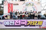 미담타임스 김준완 기자 | 제10회 예천전국가요제가 2일 오후 2시,‘2025 예천활축제&농산물축제’ 특설무대에서 열렸다. (사)한국연예예술인총연합회예천지회(지회장 채희삼)의 주관으로 진행되는 이번 대회에는 전국에서 엄선된 본선 12팀이 출연하여 열띤 경연을 펼쳤다. 예천전국가요제는 지역 문화예술 발전과 대중음악 활성화를 위해 꾸준히 이어져 온 행사로 예천색소폰동호회의 식전공연을 시작으로 본선 진출자 12팀과 강민주, 통일메아리악단, 인댄스 무용단 등의 초청공연이 펼쳐졌다. 시상식에서는 400만 원의 상금이 걸린 대상은 문정옥 씨(대구) 금상은 유소라 씨(충주)가 수상했으며, 은상은 장혜진 씨(문경), 동상은 강나은 씨(서울), 가창상은 김정희 씨(영주), 인기상은 최우혁 씨(대구)에게 각각 수여됐다. 수상자들에게는 수상의 영예와 함께 많은 격려가 전해졌다. 김학동 군수는 “지역문화 활성화와 주민 화합의 장을 마련해 가고 전국가요제가 더욱 발전하여 예천을 대표하는 문화예술축제로 자리매김하기를 바란다”고 전했다.