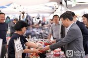 미담타임스 정주환 기자 | 신상진 성남시장은 추석 명절을 앞둔 29일 모란민속5일장과 중앙공설시장을 차례로 방문해 상인들을 격려하고 시민들과 명절 인사를 나눴다. 이번 방문은 명절을 앞두고 전통시장의 물가 동향을 직접 점검하고, 소비심리 위축과 유통환경 변화로 어려움을 겪는 상인들의 애로사항을 듣기 위해 마련됐다. 신 시장은 모란민속5일장에서 장바구니를 든 시민들과 인사를 나누며 “풍성한 한가위 보내시라”는 덕담을 건넸다. 이어 과일가게와 채소가게 등을 둘러보며 상권 경기를 점검하고 상인들의 의견을 청취했다. 신 시장은 “경기 침체와 소비 위축으로 상인들의 어려움이 크다는 것을 잘 알고 있다”며 “앞으로도 전통시장이 활력을 되찾을 수 있도록 성남사랑상품권 활성화와 다양한 맞춤형 정책을 적극 추진해 상인들이 희망을 품고 영업할 수 있도록 최선을 다하겠다”고 강조했다. 한편, 성남시는 추석을 앞두고 시민들의 장바구니 부담을 덜고 지역 상권에 활력을 불어넣기 위해 10월 1일부터 31일까지 한 달간 1000억원 규모의 성남사랑상품권을 10% 특별 할인 판매한다. 또한 시민들의 혜택을 확대하기 위해 1인당