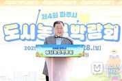 미담타임스 정주환 기자 | 파주시는 운정건강공원에서 지난 26일부터 3일간 ‘젊은 농부와 도시가 만나다’를 주제로 열린 ‘제4회 파주시도시농업박람회’를 성황리에 마치고, 도시민과 농촌이 하나 되는 자리를 통해 파주시 도시농업의 미래 가능성을 제시했다고 밝혔다. 전시공간과 체험공간을 운영, 도심에서는 보기 어려운 목화, 대추나무, 레몬, 까치콩, 달가지 등 여러 가지 농작물 전시와 도시농업 작품 전시를 통해 도시민이 농업에 쉽게 접근하고 이해할 수 있도록 꾸몄다. 삼색경단꼬치·바람떡 만들기, 다육정원·관엽정원 만들기, 전통 다식 등 다양한 체험 프로그램과 거리공연(버스킹), 동극, 비눗방울 공연 등의 가족단위 공연 프로그램은 방문객들의 뜨거운 반응을 이끌어 냈다. 또한 시에서 배출한 도시농업관리사들의 숨은 기량을 뽐내는 ‘제2회 도시농업관리사 작품 전시전’과 관내 4개 중고등학교 학생들이 직접 참여한 ‘청소년 도시농업 경연대회’, 파주시 어린이집에서 직접 재배한 ‘벼 화분 전시’는 관람객들의 눈을 즐겁게 했다. 박람회는 잔디광장 텃밭 정원에 심었던 여러 가지 쌈 채소와 도시농업관리사 전시 작품들을 나누고 기부하는