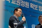 미담타임스 정주환 기자 | 임태희 경기도교육감이 23일 열린 ‘제4회 전국 교육정책 네트워크 교육정책 토론회’ 자리에서 “대한민국 교육의 미래를 위해서는 안정적인 교원정원 확보를 위한 노력과 탄력적이고 유연한 교원정원 제도가 이뤄져야 한다”고 강조했다. 이번 토론회는 경기도교육청, 충청북도교육청, 교육부, 교육정책 네트워크가 공동 주최하고 한국교육개발원이 주관해 이뤄졌다. 토론회에는 임태희 교육감을 비롯해 윤건영 충청북도 교육감, 고영선 한국교육개발원장, 17개 시도교육청 교육정책 기획 및 인사정책 담당자, 교육 관련 연구기관 담당자, 교원 등 100여 명이 참석했다. 이날 토론회는 ‘미래지향적인 교원정원 확보 방안과 과제’를 주제로 1부 연구 보고와 2부 대담으로 구성했다. 제1부에서는 ▲우리나라 교원정원 산정 방식 ▲우리나라 교원정원에 관한 재정구조에 따른 쟁점과 과제를 중심으로 미래교육 수요에 대응하는 교원정원제도 개편 방안 연구 보고가 이뤄졌다. 제2부에서는 고영선 한국교육개발원장의 진행으로 전국시도교육감협의회 교원정원특별위원회 공동 위원장인 임태희 경기도교육감과 윤건영 충청북도