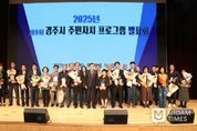 미담타임스 김준완 기자 | 경주시는 3일 화랑마을 화랑전시관 내 기파랑관 및 기획전시실에서 ‘제9회 경주시 주민자치 프로그램 발표회 및 전시회를 성황리에 개최했다. 올해로 9회를 맞은 이번 행사는 주민이 주체가 되어 이룬 자치의 성과를 공유하고, 지역공동체의 힘을 하나로 모으는 시민 축제로 자리매김했다. 행사는 경주시 주민자치연합회가 주관으로 열렸으며, 주낙영 경주시장을 비롯해 이동협 경주시의회 의장, 읍면동 주민자치위원, 강사, 수강생 등 500여 명이 참석해 뜨거운 열기로 현장을 가득 채웠다. 서면주민자치센터의 경쾌한 사물놀이 공연을 시작으로 라인댄스, 실버댄스, 색소폰, 난타, 고고장구 등 19개 팀이 무대에 올라 1년간 갈고 닦은 실력을 뽐냈다. 또한 기획전시실에서는 불국동의 어반스케치, 건천의 수채화 등 수강생들의 수준 높은 작품들이 전시돼 관람객들의 눈길을 끌었다. 특히 이날 행사에서는 ’2025 APEC 정상회의‘의 성공적인 개최를 기념하기 위한 대형 현수막 퍼포먼스가 펼쳐졌다. 참석자 전원이 ’우리의 힘으로, 경주가 세계로!’라는 문구가 새겨진 현수막을 펼치며