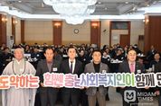 미담타임스 정인화 기자 | 김태흠 충남도지사와 사회복지 종사자들이 올 한 해도 사각지대 없는 충남 복지를 위해 최선을 다할 것을 다짐했다. 김 지사는 13일 아산 온양제일호텔 열린 ‘2026년 충남 사회복지인 신년교례회’에 참석해 “충남은 더욱 두텁고 촘촘한 복지 안전망을 만들어 나갈 것”이라며 새해 도정 방향과 사회복지 정책 비전을 공유했다. 김 지사는 “오늘날 급속한 고령화와 양극화, 여기에 재난 수준의 기후변화까지 겹치면서 날이 갈수록 사회복지의 역할과 중요성이 커지고 있다”며 “새해에도 사각지대 없는 충남 복지를 위해 함께 힘을 모아달라”고 강조했다. 이어 “현장에서 묵묵히 헌신하는 여러분들의 노고가 있기에 사회복지 정책이 실질적인 효과를 거두는 것이라 생각한다”며 “든든한 동반자로서 늘 함께해 주시길 부탁드리고, 여러분들이 더 나은 환경에서 자부심을 갖고 일하실 수 있도록 끊임없이 노력하겠다”고 격려했다. 한편, 충남사회복지협의회 주최로 열린 이날 행사는 김 지사를 비롯해 도내 사회복지시설장과 유관기관 관계자 등 100여 명이 참석해 새해 인사를 나누고 충남 사회복지 발전 방안을 함께 모색