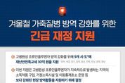 미담타임스 조혜리 기자 | 겨울철 가축질병 방역 강화를 위한 긴급 재정 지원 - 고병원성 조류인플루엔자 방역 강화를 위해 9개 시·도*에 재난안전특교세 30억 원을 지원 *광주, 세종, 경기, 충북, 충남, 전북, 전남, 경북, 경남 - 이번 지원은 고병원성 조류인플루엔자가 지속적으로 발생하는 지역의 소독약품 구입, 거점소독시설 및 이동통제초소 운영 등 보다 강화된 현장 방역활동을 지원하기 위해 결정 - 행안부는 지난해 11월 24일에 14개 시·도에 고병원성 조류인플루엔자 확산 방지를 위한 재난안전특교세 50억 원을 지원했으며 이번까지 포함하면 총 80억 원을 지원