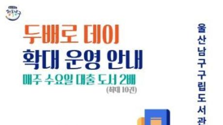 미담타임스 김준완 기자 | 울산 남구는 시민들의 독서 문화 확산과 도서관 이용 활성화를 위해 ‘두배로 데이’를 기존 월 1회에서 주 1회로 확대 운영한다. ‘두배로 데이’는 문화체육관광부가 추진하는 ‘문화가 있는 날’의 세부 사업으로 도서관 이용자가 1인당 대출할 수 있는 도서 권수를 기존 5권에서 10권으로 한시적으로 확대하는 프로그램이다. 남구는 그동안 도산도서관, 신복도서관, 옥현어린이도서관, 월봉도서관 4개 구립도서관에서 매월 마지막 주 수요일 ‘두배로 데이’를 운영해 왔다. 운영 결과, 도서 대출 권수는 일반 평일 대비 약 80% 증가했으며 대출자 수 또한 약 27% 증가하는 등 이용자 분산과 독서 장려 효과가 확인된 것으로 나타났다. 특히 1인당 평균 대출 권수는 4.7권으로 평일과 주말보다 높게 나타나 대출 한도 확대 정책이 실질적인 도서 이용으로 이어지고 있는 것으로 분석됐다. 이에 남구는 시민들의 도서관 이용 편의를 높이고 독서 활동을 더욱 활성화하기 위해 ‘두배로 데이’를 매주 수요일로 확대 운영하기로 했다. 또한 기존 4개 도서관에 철새마을도서관을 추가