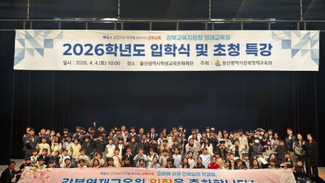 미담타임스 박민정 기자 | 울산광역시교육청은 올해 미래 사회를 이끌 창의적이고 바른 인성을 갖춘 인재를 육성하고자 강북·강남교육지원청 초중등 영재교육원 28학급을 운영한다. 초등은 수학, 과학, 발명, 인공지능 디지털 융합의 4개 영역을, 중등은 수학, 과학, 발명의 3개 영역을 각각 20주간 운영한다. 학생들은 공통 교육과정 수업과 학부모 공개수업, 연구성과물 발표회 등 특별 프로그램으로 자기주도 학습 능력과 탐구 역량을 키운다. 또한 인문학 전문가 특강과 지도력(리더십) 양성 캠프 등 인성 함양 프로그램도 함께 운영한다. 강북교육지원청(교육장 한성기) 영재교육원은 4일 울산학생교육문화회관 대공연장에서 신입생과 학부모, 지도교사 등 200여 명이 참석한 가운데 ‘2026학년도 입학식’을 열었다. 수업은 염포초 등 협력학교 4곳에서 매주 토요일 진행되며, 오는 11일부터 학사 일정에 들어간다. 이에 앞서 강남교육지원청(교육장 임채덕) 영재교육원은 지난 28일 울산과학관 빅뱅홀에서 입학식을 열고, 4일부터 수업에 들어갔다. 수업은 동평초 등 협력학교 4곳에서 매주 토요일 진행된다. &nb