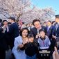 미담타임스 공한별 기자 | 여의도 순복음교회에서 부활절 연합 예배를 마친 이재명 대통령과 김혜경 여사는 여의도 윤중로에 나가 벚꽃놀이를 즐기러 온 시민들과 깜짝 소통에 나섰다. 시민들은 “대통령님, 여사님 파이팅”, “반갑습니다”, “감사합니다”, “여기도 봐주세요!”등을 외치며 이 대통령 부부를 반갑게 맞이했다. 이 대통령 부부는 사진 촬영을 요청하는 시민들과 셀카를 찍으며 인사를 나눴고, 파나마와 중국에서 온 외국인들과도 셀카를 찍었다. 이어 자신을 독립유공자의 딸이라고 밝힌 할머니와 그 손녀와도 함께 사진을 찍기도 했다. 이 대통령은 혼자 오신 어르신께 “어디서 오셨느냐?”고 친근하게 말을 건네고, 유모차를 탄 아이나 어린이와 눈높이를 맞추기 위해 무릎을 굽혀 셀카를 찍는 등 특유의 친근함으로 시민들과 눈높이 소통에 나섰다. 어린 아이를 안고 있는 젊은 부부나 신혼부부들의 사진 요청을 유독 반긴 이 대통령은 "신혼부부가 정말 중요하다"고 크게 웃으며 강조했다. 한편, 엄마와 함께 온 한 어린이가 “대통령 할아버지 사진 찍어주세요!” 라고 외치자 대통령실의 한 참모는 “대통령 할아버