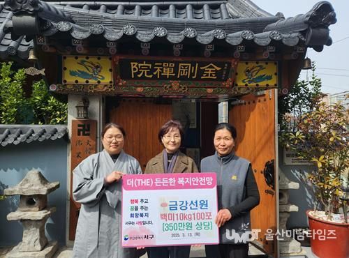 미담타임즈 김교환 기자 | 부산 서구 동대신동 소재 대한불교 조계종 금강선원(주지 법산당 청원스님)은 지난 13일 서구에 백미 10kg 100포를 지원했다.