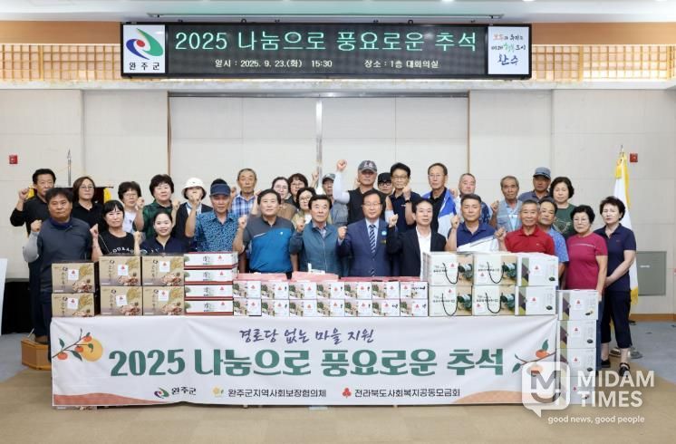 군은 지난 23일 전북 사회복지공동모금회, 완주군지역사회보장협의체와 함께 추석 명절을 맞아 ‘2025 나눔으로 풍요로운 추석’ 행사를 진행했다.