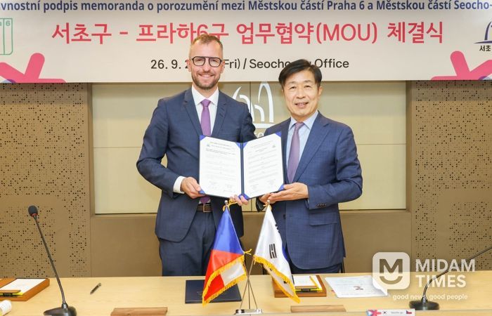 미담타임스 정주환 기자 | 서울 서초구는 지난 26일 구청 5층 대회의실에서 체코 프라하 6구와 문화, 예술, 교육 분야 등 상호 교류 우호증진을 위한 우호도시협정 양해각서(MOU)를 체결했다고 밝혔다.