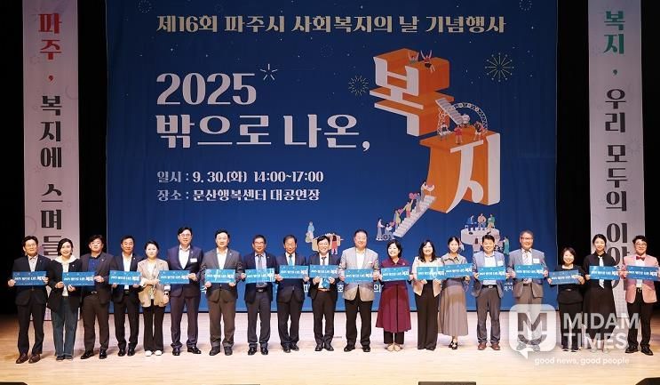 미담타임스 정주환 기자 | 파주시는 지난 30일 문산행복센터 대공연장에서 복지의 의미를 시민과 함께 되새기고 지역 사회와의 소통을 넓히기 위해 ‘2025년 파주시 사회복지의 날 기념행사’를 개최했다.