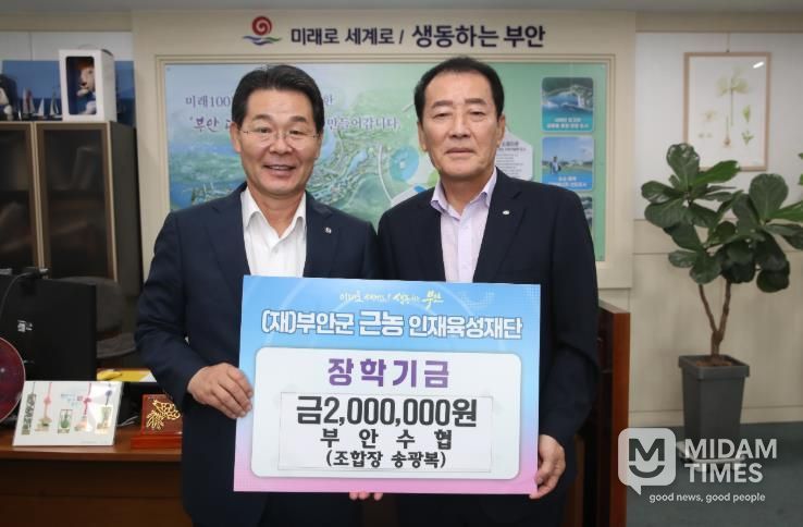 미담타임스 정인화 기자 | 부안수산업협동조합은 지난 9월 30일 부안군 근농인재육성재단을 방문해 장학금 200만원을 기탁했다.