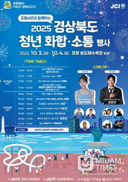 미담타임스 김준완 기자 | 포항시는 경상북도 청년들의 화합과 소통을 위한 ‘경북 청년대축제’가 오는 3일부터 4일까지 양일간 포항 송도해수욕장에서 펼쳐진다고 전했다.