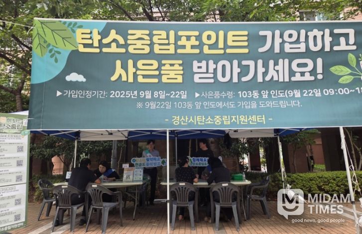 미담타임스 김준완 기자 | 경산시 탄소중립지원센터는 2050년 탄소중립 사회 실현을 목표로 시민 참여를 확대하기 위한 다양한 노력을 이어가고 있다. 일환으로 지난 9월 22일과 23일, 공동주택을 대상으로 한 탄소중립 포인트 가입 확대 시범 사업을 실시했다.