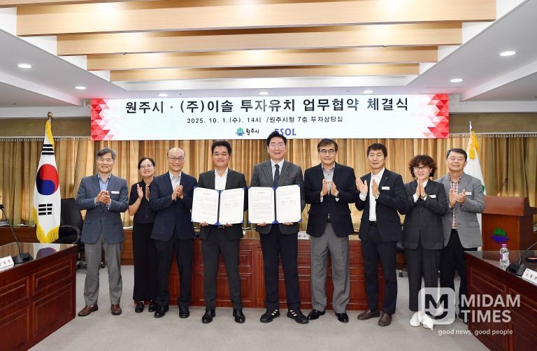 미담타임스 정인화 기자 | 원주시는 10월 1일 오후 2시, 시청 7층 투자상담실에서 ㈜이솔(대표 김병국)과 투자유치 협약(MOU)을 체결했다. 이번 협약은 총 505억 원 규모의 투자로, 부론일반산업단지에 소형 방사광가속기와 첨단 EUV 반도체 검사장비 연구·생산시설을 구축하는 사업이다. EUV(Extreme Ultra-Violet)는 반도체 초미세 공정(7nm 이하)에 필수적인 광원이다.