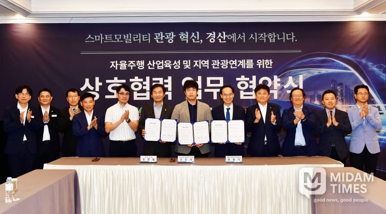 미담타임스 김준완 기자 | 경산시는 10월 1일, 힐튼호텔 경주에서 ㈜오토노머스에이투지, (재)경북IT융합산업기술원과 함께 '자율주행 산업 육성 및 지역관광 연계를 위한 상호협력 업무협약'을 체결했다.