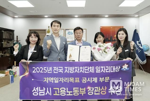 미담타임스 정주환 기자 | 성남시는 고용노동부 주관 ‘2025년 전국 지방자치단체 일자리대상’에서 지역일자리목표 공시제 부문 ‘고용노동부 장관상’을 수상했다고 2일 밝혔다.