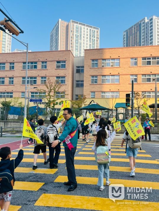 미담타임스 정주환 기자 | 연수구는 지난달 30일과 10월 1일 은송초등학교와 새봄초등학교 앞 스쿨존 횡단보도에서 ‘어린이 교통안전 깃발 캠페인’을 실시했다.