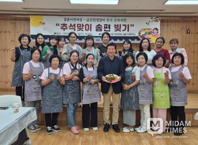 이날 박범인 금산군수는 행사장을 찾아 지역에 잘 적응하고 있는 결혼이주여성들을 격려하고 함께 송편을 빚는 시간을 가졌다.
