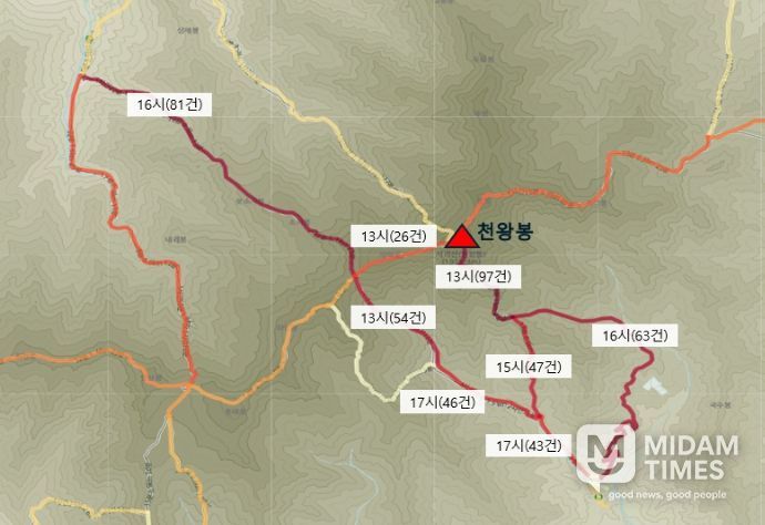 분석에 따르면 오후 1시~4시 사이 하산 구간에서 사고의 약 41%가 발생했으며, 주된 원인은 조난(32.2%), 사고·부상(29.6%), 질환(11.9%) 등으로 나타났다. 산행 시 체력 저하로 인한 부주의나 건강 상태를 고려하여 자기 몸에 맞는 등산 코스를 선택하는 것이 사고 예방에 도움이 된다.