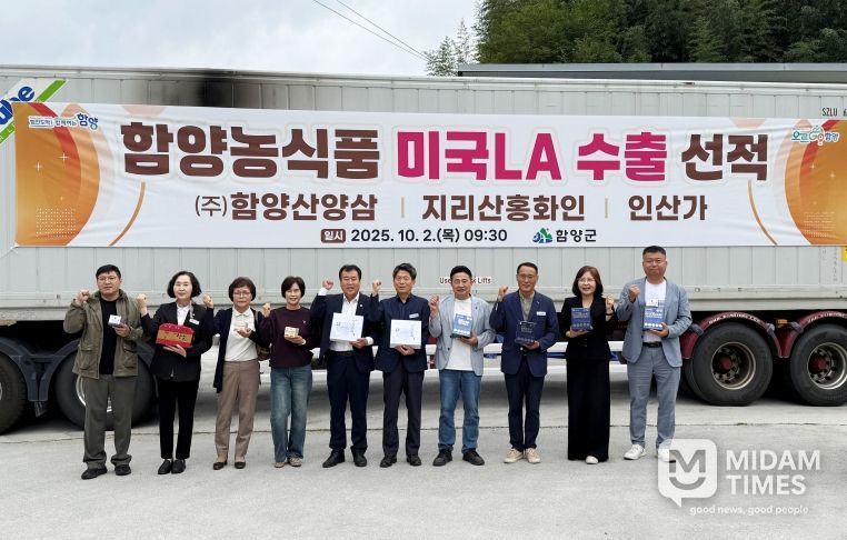 미담타임스 김교환 기자 | 함양군은 2일 안의면에서 김윤택 함양군의회 의장을 비롯해 수출 관계자 15명이 참석한 가운데 ‘함양 농식품 미국 LA 수출 선적식’을 개최했다.