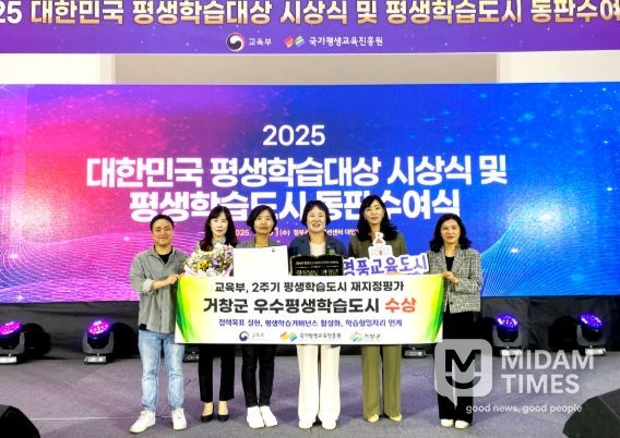 미담타임스 김교환 기자 | 거창군은 지난 10월 1일 정부세종컨벤션센터에서 열린 제22회 대한민국 평생학습대상 시상식과 우수평생학습도시 시상식에서 우수 평생학습도시 선정 기념패를 수상했다고 밝혔다.