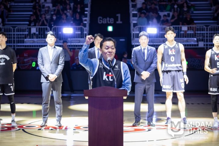 미담타임스 정주환 기자 | 이재준 수원특례시장이 4일 수원KT소닉붐아레나에서 열린 ‘2025-2026 프로농구 KBL 홈 개막전’에서 개막선언을 했다. 수원KT소닉붐과 부산KCC의 홈 개막전에서 축사를 한 이재준 시장은 “시민과 함께 수원KT 소닉붐의 우승을 기원하며 시민들과 함께 응원하겠다”고 말했다. 이재준 시장은 개막선언을 했다. 수원KT소닉붐은 개막전에서 85대 67로 승리했다.