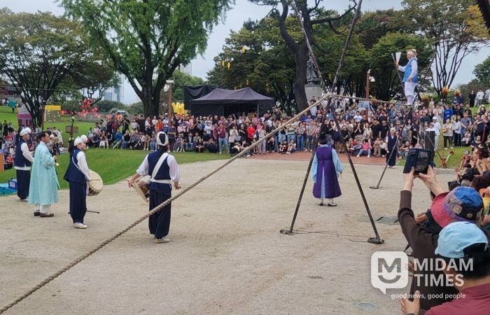이번 공연은 10월 4일부터 9일까지 1일 1회(추석당일 제외), 총 5회 일정으로 많은 시민과 관광객이 참여해 낮 시간대에 펼쳐지는 공연임에도 관람석이 가득 찰 만큼 뜨거운 열기를 보였다.