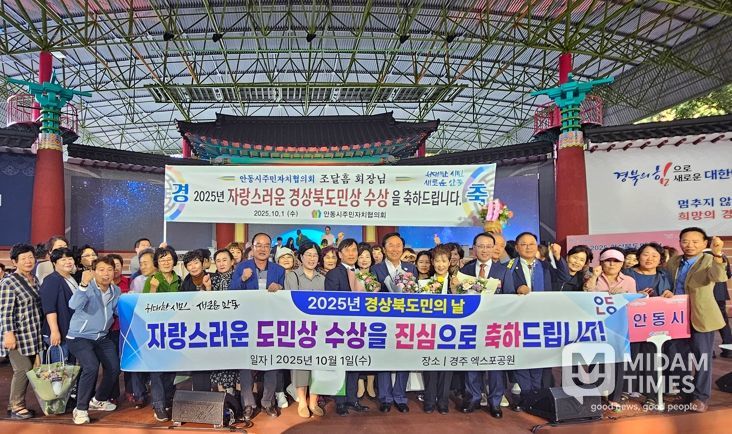 미담타임스 김준완 기자 | 안동시는 10월 1일 경주엑스포공원 백결공연장에서 열린 ‘2025년 경상북도민의 날’ 기념식에서, 안동시민 3명이 ‘자랑스러운 도민상’을 수상했다고 밝혔다.