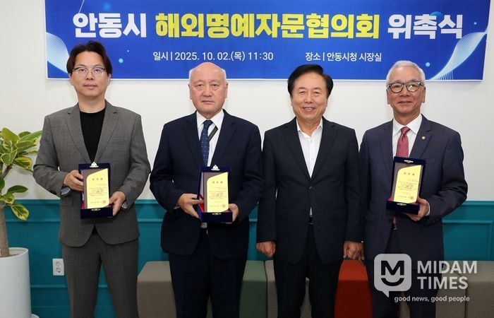 미담타임스 김준완 기자 | 안동시는 10월 2일 해외명예자문협의회 자문위원 3명에 대한 추가 위촉식을 개최했다. 해외명예자문협의회는 해외에서 활발하게 활동하는 한인 인사 8명으로 구성됐으며 임기는 2027년 4월까지 2년이다. 이들은 안동시와 세계 각국을 연결하는 가교로서, 국제교류․협력 확대에 핵심적인 역할을 맡게 된다.