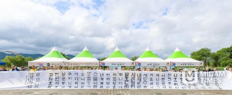 이날 행사에는 지역 서예인과 군민, 관광객 등 100여 명이 참여해 한글의 창제 의미를 함께 나누었다.