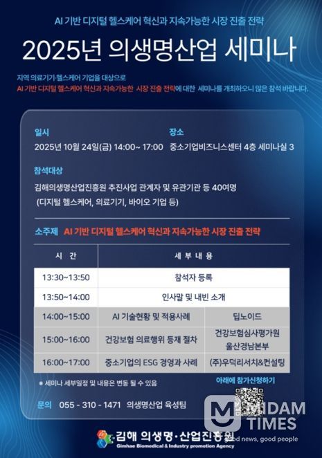 미담타임스 김교환 기자 | 김해의생명·산업진흥원은 오는 24일에 『2025년 의생명산업 세미나』를 개최한다.
