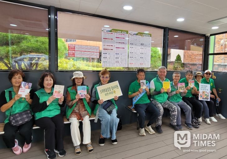 미담타임스 김준완 기자 | 효령면 새마을회가 버스를 기다리는 주민들을 위해 스마트승강장 내 책꽂이에 도서를 기증하며 따뜻한 정서지원 활동을 이어가고 있다.