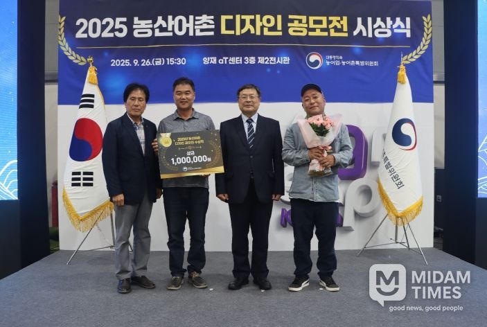 미담타임스 김준완 기자 | 문경시 산북면의 문경큰사람마을이 지난 9월 26일 서울 aT센터에서 대통령직속 농어업농어촌특별위원회가 주최한 2025 농산어촌 디자인 공모전에서 우수작으로 선정됐다.
