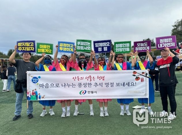 미담타임스 김준완 기자 | 안동시는 2025년 추석 명절을 앞두고 공직자의 청렴 의식을 높이고 명절 기간 중 금품․향응 수수 등 부패 요인을 사전에 차단하기 위해 ‘추석 명절 청렴 캠페인’을 전개했다.