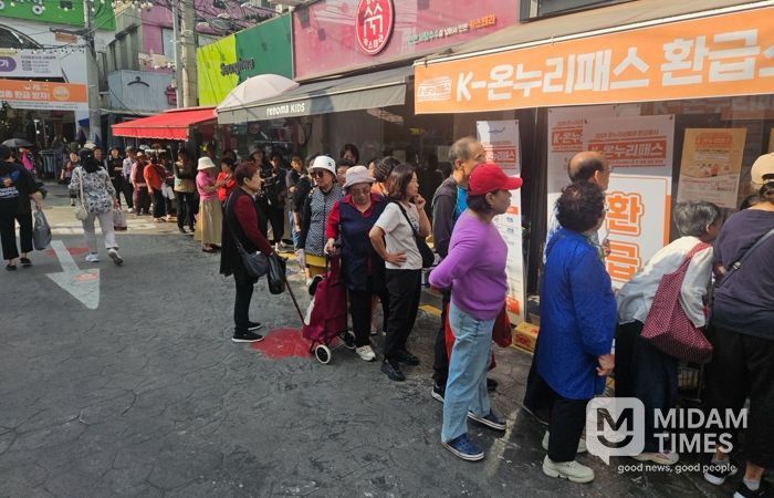 미담타임스 김준완 기자 | 구미시는 전통시장 활성화와 지역경제 회복을 위해 추진 중인 '2025 K-온누리패스(온누리상품권 환급)' 행사가 시민들의 큰 호응 속에 활기를 띠고 있다고 밝혔다. 이번 행사는 9월 25일부터 11월 9일까지 구미새마을중앙시장, 문화로ㆍ중앙로 동문상점가 등 지정 점포에서 운영된다.