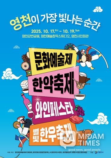 올해는 오는 17일부터 19일까지 3일간 강변공원에서 ▲제23회 한약축제 ▲제51회 문화예술제 ▲제13회 와인페스타 with 별빛한우 명품구이축제 등 영천시 주요 축제를 공동 개최한다. 영천예술상 시상식과 추억사랑희망 콘서트 등 공연은 시민회관에서, 수석전·민화전 등 전시회는 예술창작스튜디오에서 열린다.