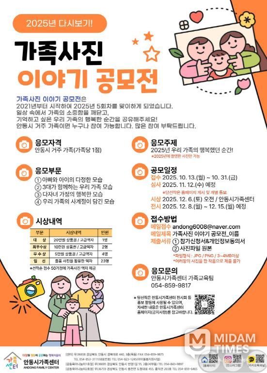 미담타임스 김준완 기자 | 안동시는 가족의 소중한 추억을 되새기기 위한 『2025년 다시보기! 가족사진 이야기 공모전』을 개최한다.