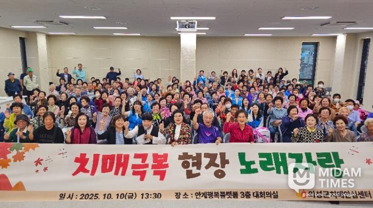 미담타임스 김준완 기자 | 의성군은 지난 10일 안계행복플랫폼 3층 대회의실에서 치매보듬마을, 우리마을 예쁜치매쉼터, 안계치매단기쉼터, 안계노인복지관 이용자 등 지역 주민 110여 명이 참석한 가운데'치매극복 현장 노래자랑'행사를 성황리에 개최했다고 밝혔다.