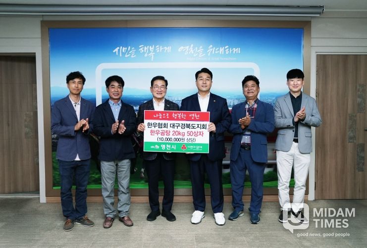 미담타임스 김준완 기자 | 영천시는 13일 전국한우협회 대구경북도지회(도지회장 장성대)가 영천시장애인종합복지관에 1000만원 상당의 한우곰탕 20kg 50상자를 기탁했다고 밝혔다.
