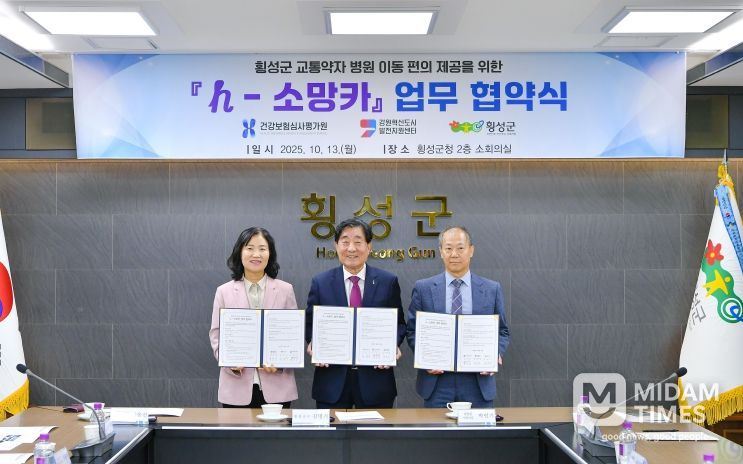 미담타임스 정인화 기자 | 횡성군은 의료 사각지역 교통약자를 위한 병원이동용 차량 지원 사업 추진을 위해 13일 횡성군청에서 건강보험심사평가원(심평원), 강원혁신도시발전지원센터(센터)와 업무협약을 체결했다.
