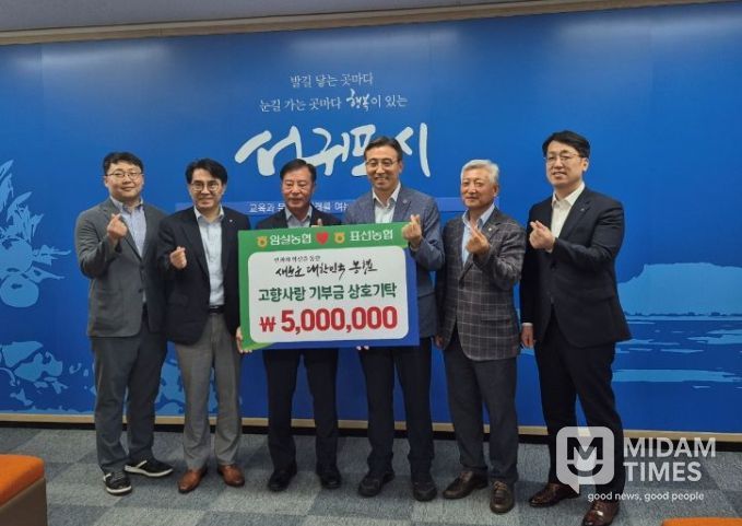 미담타임스 정인화 기자 | 전북 임실군 임실농업협동조합은 13일 서귀포시청을 방문하여 고향사랑기부금 500만원을 기탁했다.