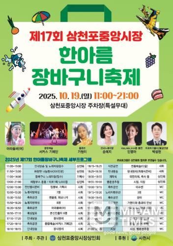 미담타임스 김교환 기자 | 사천시는 10월 19일 삼천포중앙시장 공영주차장(특설무대)에서 ‘제17회 삼천포중앙시장 한아름 장바구니 축제’를 개최한다고 14일 밝혔다.