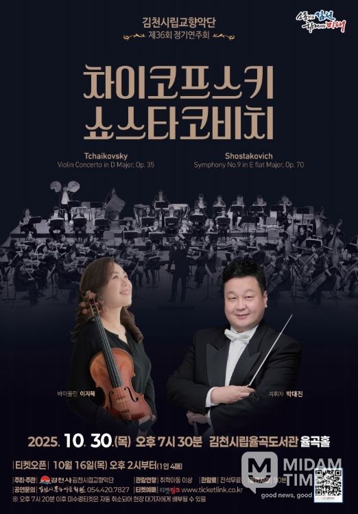 미담타임스 김준완 기자 | 김천시문화예술회관은 10월 30일 목요일 오후 7시 30분에 시립율곡도서관 2층 율곡홀에서 시립교향악단 제36회 정기연주회를 개최한다.