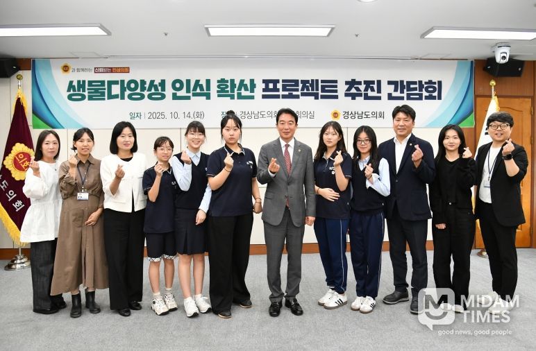 미담타임스 김준완 기자 | 경상남도의회 기획행정위원회 박동철 의원(국민의힘, 창원14)은 14일 도의회 의정회의실에서 청소년들이 제시한 ‘생물다양성 인식 확산 프로젝트’ 관련 간담회를 개최했다.