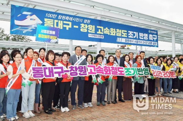 미담타임스 김교환 기자 | 창원특례시는 14일 창원중앙역에서 KTX 이용객을 대상으로 ‘동대구-창원 고속화철도’의 제5차 국가철도망 계획 반영을 촉구하는 캠페인을 실시했다.