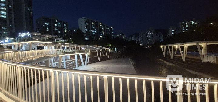 곡선으로 이뤄진 다리를 건너는 과정에 계속 바뀌는 시야를 통해 당현천의 아름다움을 만끽할 수 있도록 했다.